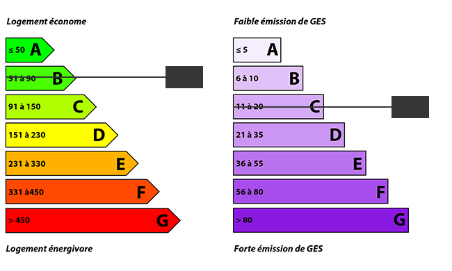 Montant estimé des dépenses annuelles d'énergie pour un usage standard: entre 470 euros et 680 euros par an.