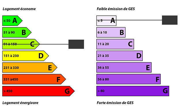 Montant estimé des dépenses annuelles d'énergie pour un usage standard: entre 630 euros et 930 euros par an.